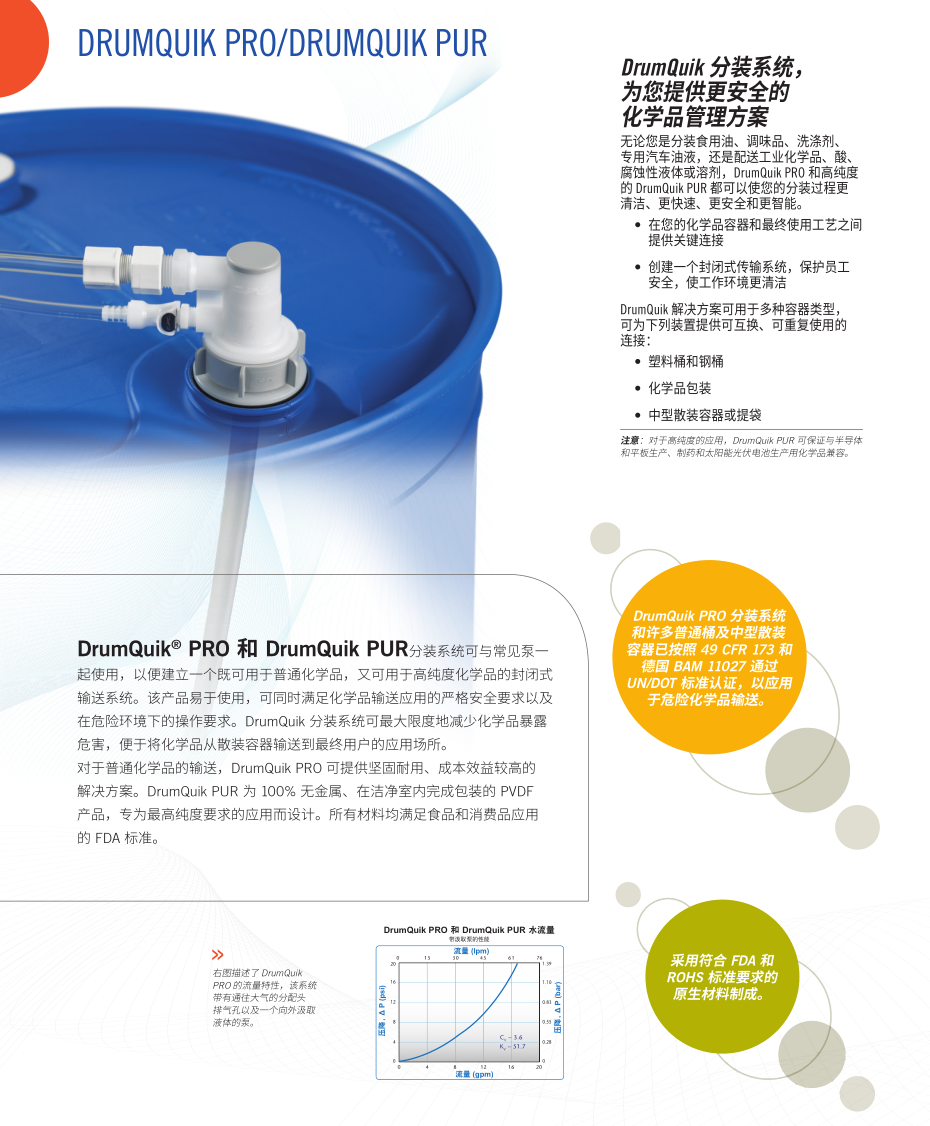 DrumQuik® PUR is changing the world of chemical management with its unique closed-system design. The DrumQuik dispensing system for smarter chemical management provides safe, easy and economical extraction of chemicals from drums, jerricans and IBC totes—while reducing spills, containing hazardous fumes and enhancing workplace safety.